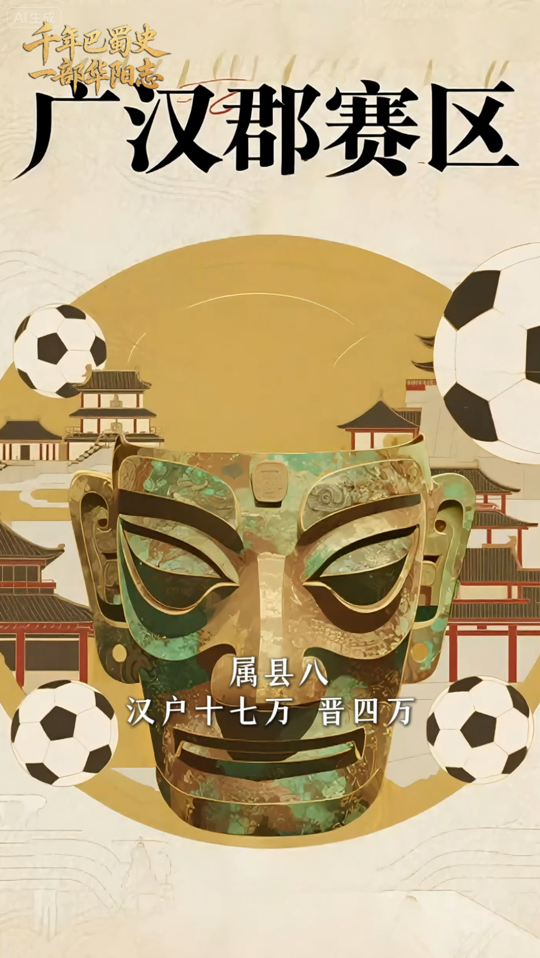 其次是“广汉郡赛区”,“属县八。汉户十七万,晋四万”,以“雒城队”,也就是“广汉队”为代表,有绵竹(绵竹市)、什邡、新都(青白江区)、郪(绵阳市三台县)、广汉(遂宁市射洪县)、德阳(遂宁市)、五城(德阳市中江县)等城市报名参赛。